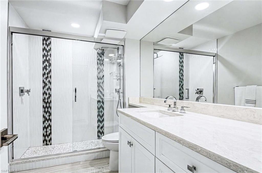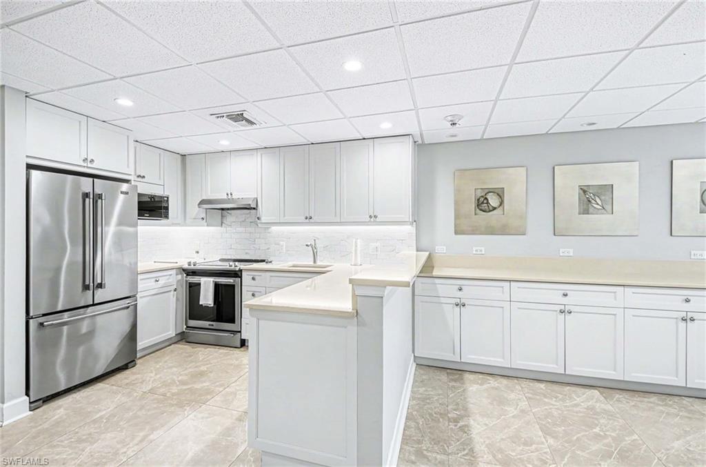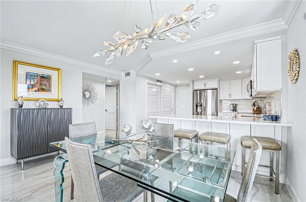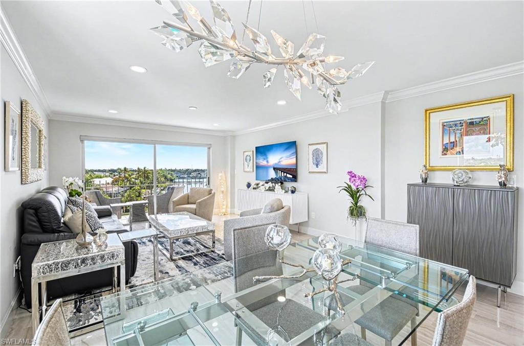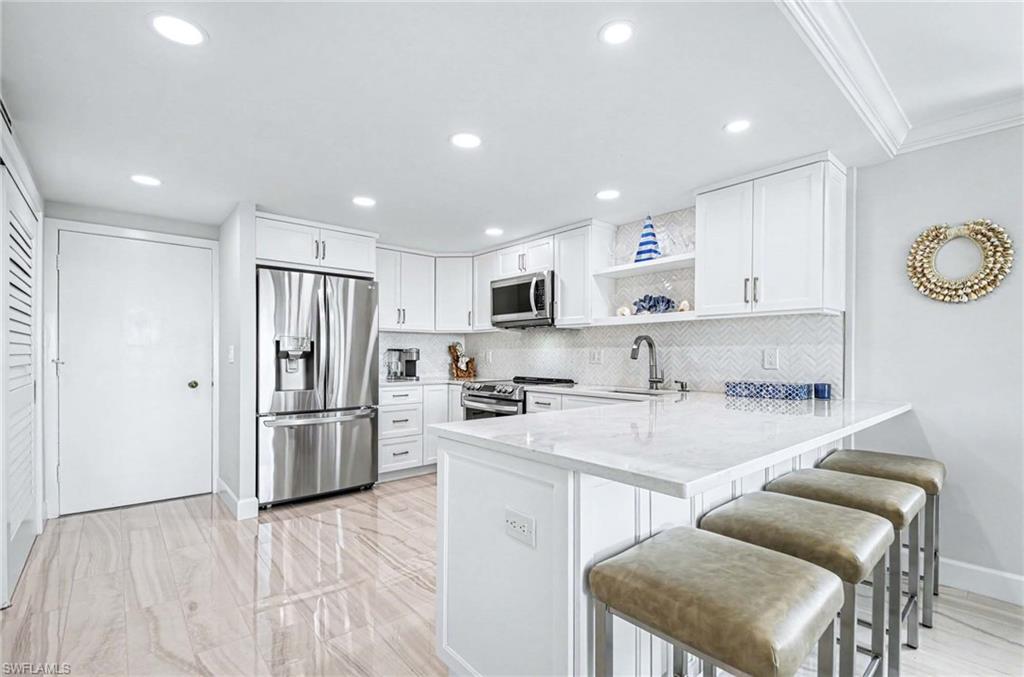 Unmatched in quality, views, and condition for this price range. Completely renovated and thoughtfully reimagined, this exceptional residence in King’s Port captures expansive long water views of Moorings Bay along with a stunning city backdrop, creating a setting that is special in every way. Situated south of Doctors Pass and across the street from Naples’ sugar sand beaches and Moorings Beach Park, the home offers elevated coastal living within one of Naples’ most desirable waterfront communities. Located in the Moorings, this residence features 2 bedrooms, 2 bathrooms, and 1,223 square feet of refined living space. Completely renovated in 2023, every detail has been carefully curated to deliver a clean, modern coastal aesthetic with high-level finishes throughout. Furnishings are negotiable, offering a fully furnished opportunity for immediate enjoyment. The kitchen is a true focal point, finished with sleek quartz countertops, custom cabinetry, updated designer lighting, and a full suite of stainless steel LG appliances. A pantry closet provides additional storage, while the open concept layout flows seamlessly into the living and dining areas, all enhanced by porcelain tile flooring for a cohesive and low maintenance design. Sliding glass doors lead to a private balcony overlooking the bay, where long water views and southern exposure combine to create a bright, inviting space ideal for relaxing or entertaining. The primary suite serves as a peaceful retreat with direct balcony access and a fully updated ensuite bath featuring a walk in shower, quartz vanity, and modern fixtures. The guest bedroom and bath are equally well appointed with updated finishes and a fresh, clean design. Additional upgrades include new lighting with LED accents, an updated water heater, and an upgraded electrical panel. The residence also includes one assigned covered carport space and a private exterior storage closet, perfect for bikes and beach gear. Residents of King’s Port enjoy a boutique waterfront setting with just 39 units, along with amenities including a community pool, grill area, outdoor shower, exercise room, and community room. The property is also eligible for private beach access at Moorings Beach Park, offering exclusive entry to one of Naples’ most pristine stretches of coastline. Located along Naples’ Miracle Mile near the new Four Seasons Resort and just minutes to 5th Avenue South and Third Street South, this is a rare opportunity to own a fully renovated coastal residence with breathtaking bay views and private beach access eligibility in the heart of the Moorings along Gulf Shore Boulevard North. A must see!
