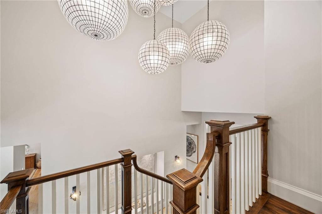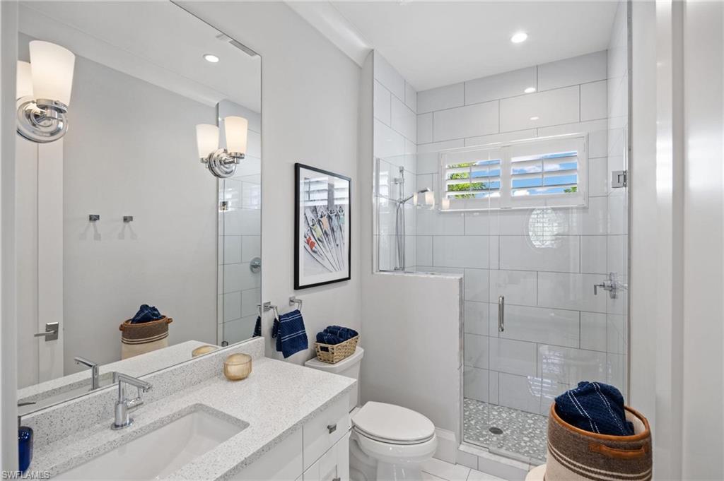 Just blocks from Naples’ famous sugar sand beaches and the charm of downtown, this elegant Olde Naples residence sits on an oversized southern exposure corner lot within the highly desirable X500 flood zone. This custom home combines timeless design, modern craftsmanship, and a premier location to deliver an exceptional living experience. The five bedroom, seven and a half bath residence features a climate controlled four car garage with alley access, a circle driveway, mature manicured landscaping, and an oversized front porch with two charming porch swings that create a warm and welcoming sense of arrival. Inside, the light filled foyer opens to a spacious great room with custom built-in cabinetry and expansive glass doors leading to the covered lanai. The outdoor living space is ideal for entertaining year round, with a gas fireplace, outdoor kitchen, and a heated pool with sun shelf surrounded by lush tropical landscaping, elegant landscape lighting, and a rarely available large fenced in artificial grass yard perfect for outdoor activities many can only dream of in Old Naples. At the heart of the home, the gourmet kitchen impresses with a large center island, paneled Sub-Zero refrigerator and freezer, Wolf gas cooktop, double wall ovens, wine chiller, beverage center, and walk-in pantry. A custom breakfast banquette and formal dining room framed by French doors create a seamless indoor outdoor flow, perfect for gatherings of any size. The first floor primary suite is a private retreat offering two walk-in closets, a morning bar, and a spa inspired bath with dual vanities, a soaking tub, and a glass enclosed shower with bench seating and multiple shower heads. Four additional ensuite bedrooms provide comfort and privacy, including a separate guest casita with private entrance, kitchenette, and custom seating area. Additional features include a study, a flex or exercise room with wet bar, a loft, and a laundry room with built-in cabinetry, sink, and dual stacked washer dryer sets. The elevated homesite provides a rare combination of a large yard and resort style pool, a unique feature in Olde Naples. Designer finishes throughout include wide plank wood flooring, custom millwork, detailed ceilings, plantation shutters, and abundant storage. This remarkable home offers the best of Naples living, style, sophistication, and location. A sanctuary of elegance, innovation, and effortless luxury designed for those who seek the extraordinary. A must see!